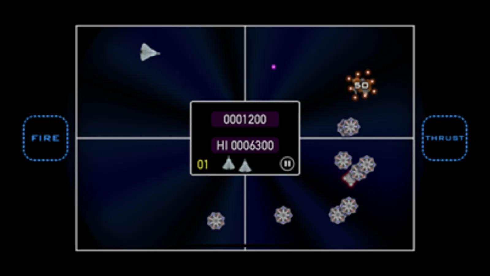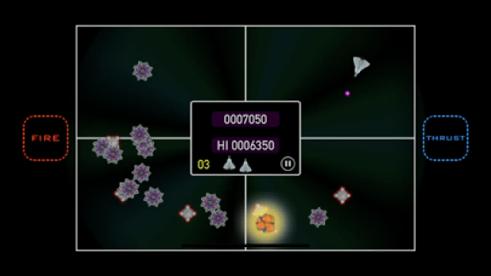 Controlled taps on the thrust button will accelerate your ship forward, and you can rotate the ship 180 degrees to the direction of motion and fire the thrusters to put on the brakes. To maintain control, use thrust strategically and sparingly.
