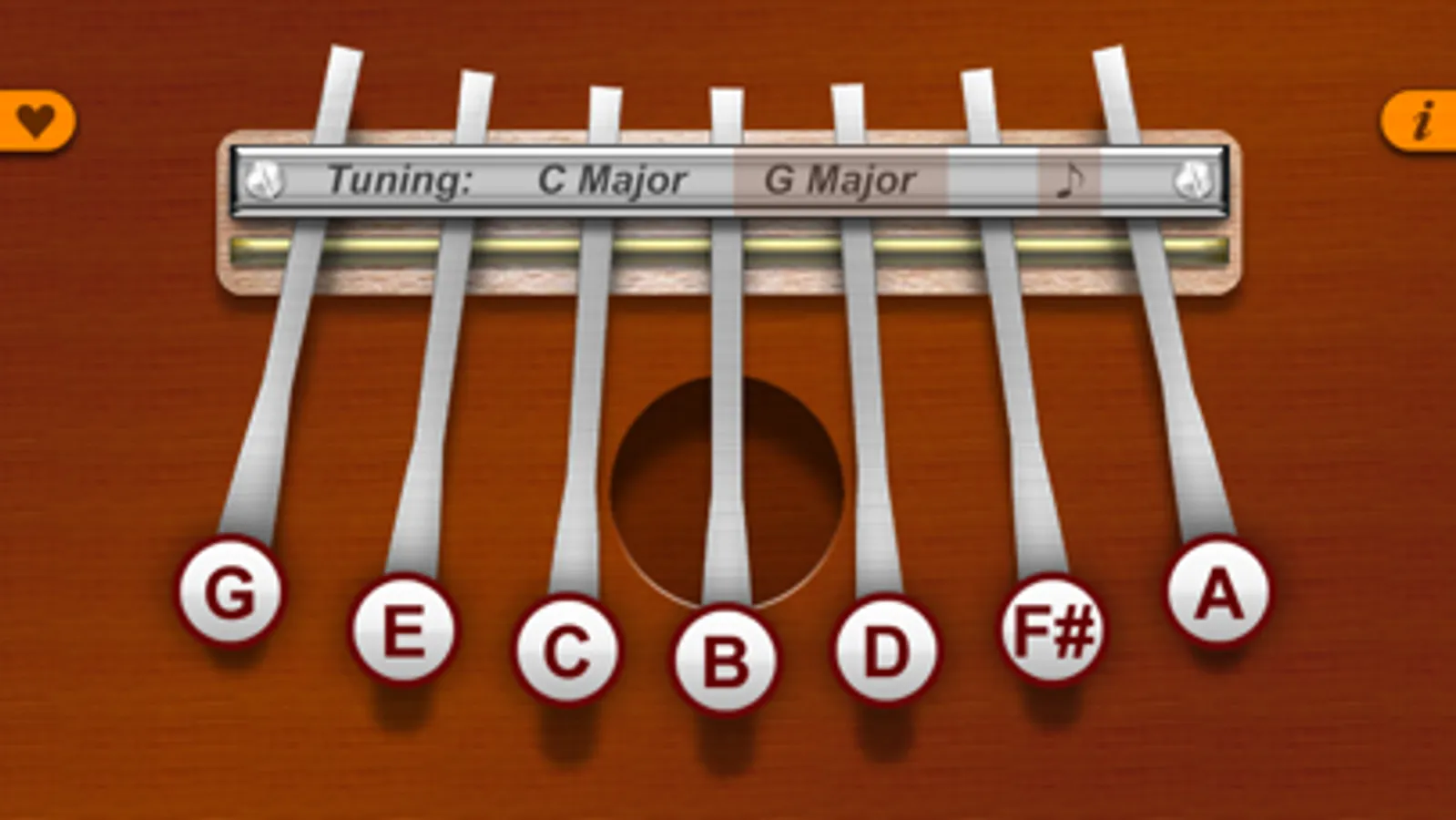 You can also change the tuning between C Major and G Major from the main screen.