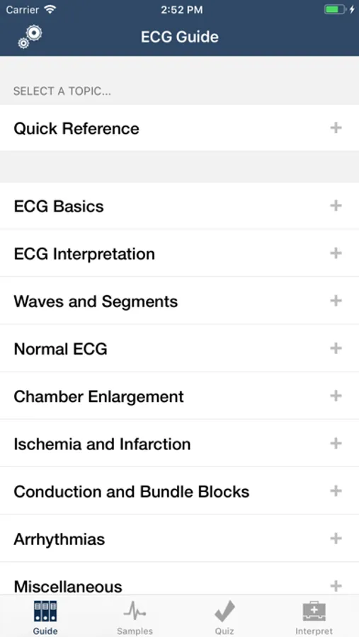 - Rapid Reference section - one tap takes you to 11 summary pages used to confidently interpret ECGs