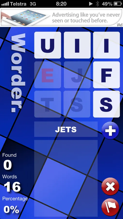 Worder also includes 6 difficulty levels, so that Worder can cater for those who are intimidated by games with large word sets, to those people who are word game experts. Level 6 includes all words, where lower levels include a subset of the entire word list, based on how commonly words are used in everyday language/text.