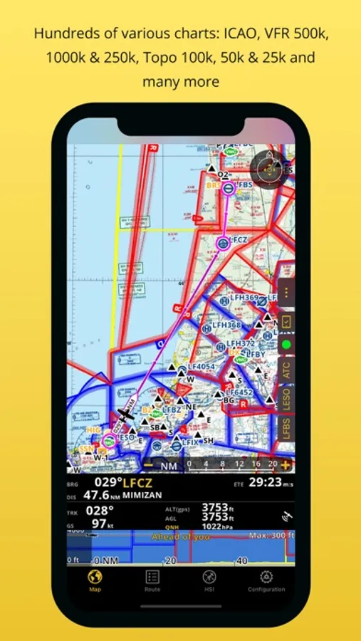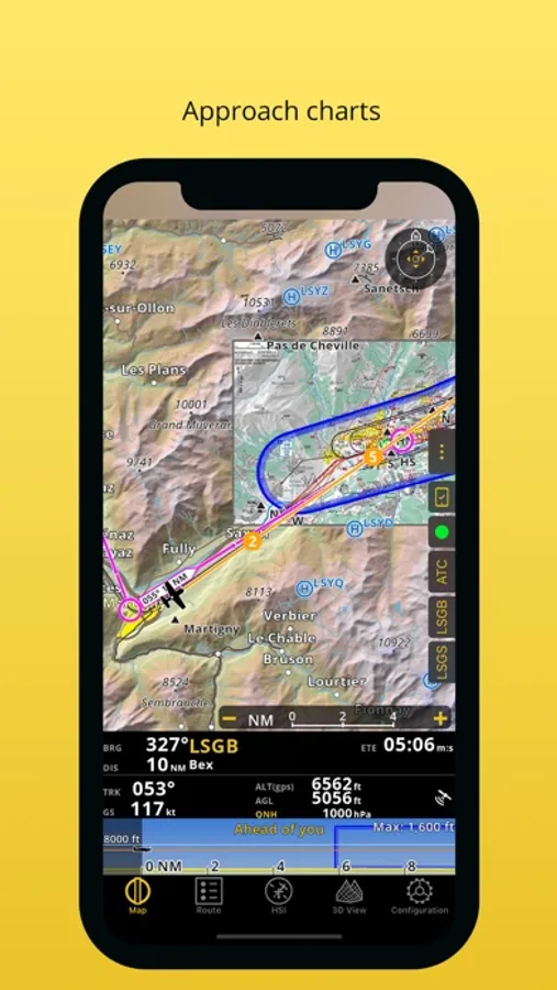 We provide a worldwide selection of free and paid charts including the main ICAO charts. The Profile View gives all terrain information for better situation awareness and safety enhancement. The 3D view provides enhanced terrain awareness and is compatible with georeferenced approach charts.