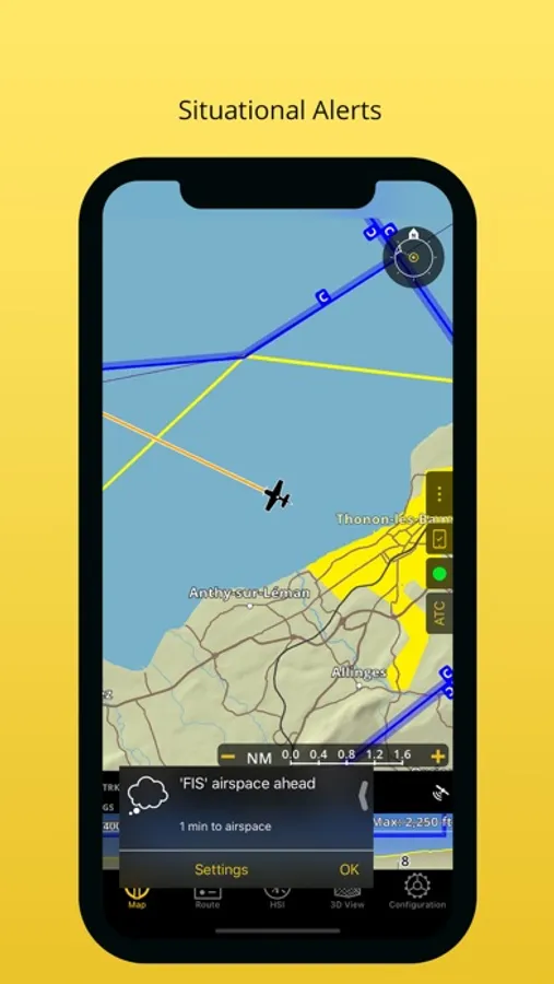 The georeferenced approach charts are designed for maximum visibility. Displaying now also in the 3D view, they provide increase awareness of your surroundings during take-off and landing. Also, create a route and Air Navigation Pro will install related approach charts you need for your flight automatically (if part of your subscription).