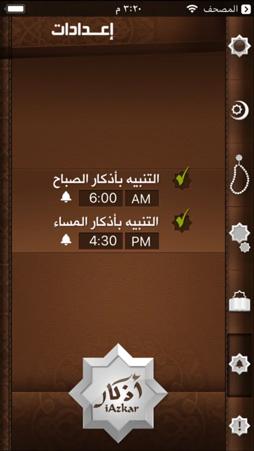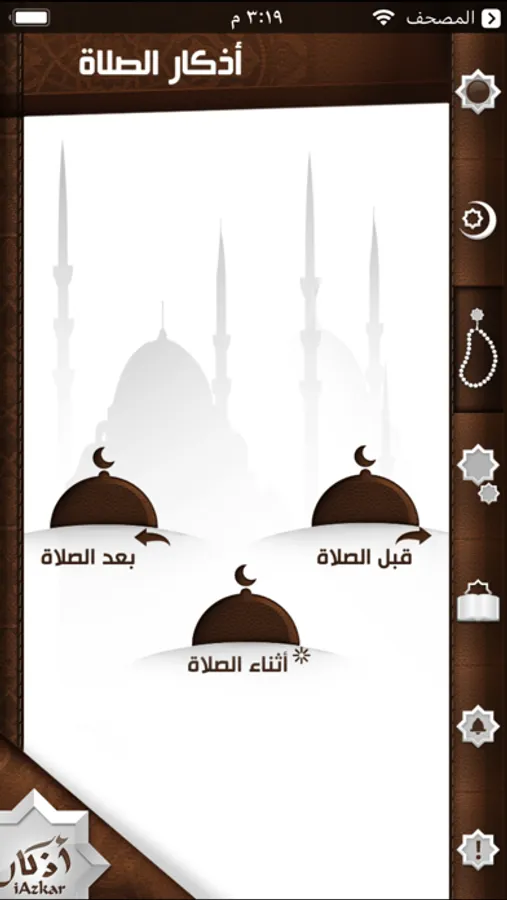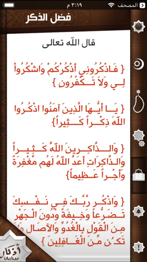 iAzkar is an Arabic Islamic App that displays Muslims Daily Athkar (Islamic Reminder) in very easy to use App. iAzkar divided daily Thekr into five different sections...