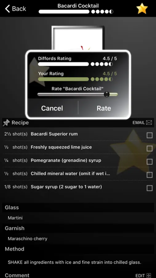 - Add your own cocktails rating.