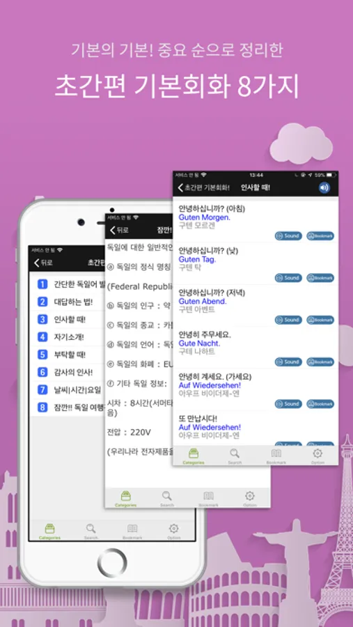 - 각 문장별로 원음에 가까운 우리말 발음을 표기하여 외국어를 모르는 분들에게도 많은 도움이 될 것입니다.