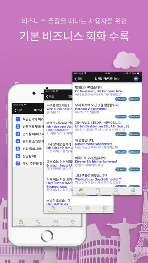 - Provides accurate pronunciation in Korean with each sentence to help those who have little understanding of foreign languages.