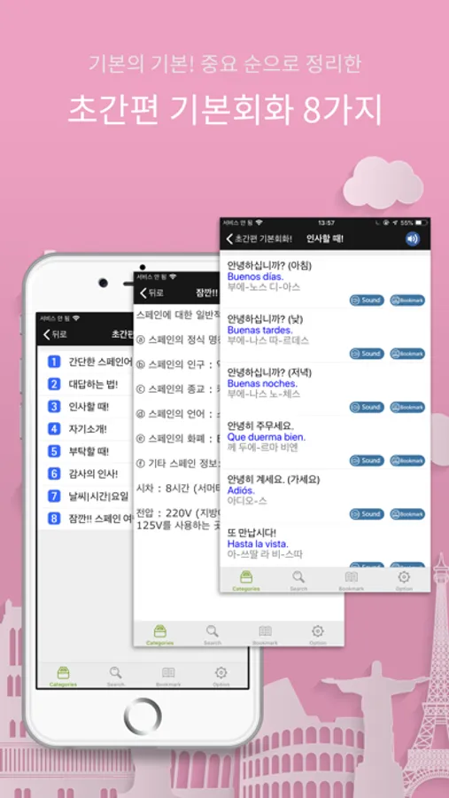- 각 문장별로 원음에 가까운 우리말 발음을 표기하여 외국어를 모르는 분들에게도 많은 도움이 될 것입니다.