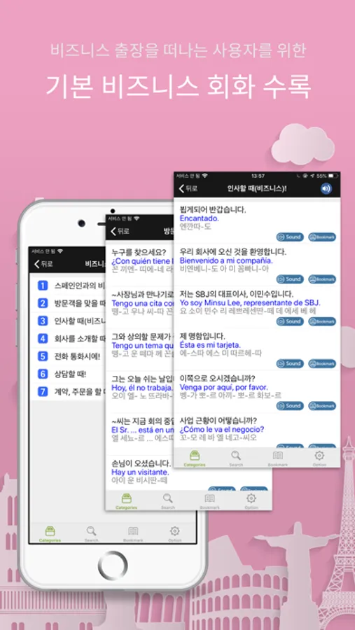 - Provides accurate pronunciation in Korean with each sentence to help those who have little understanding of foreign languages.
