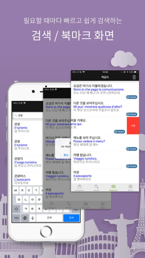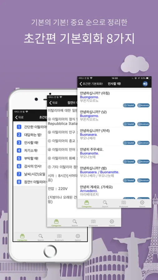 해외 여행자를 위해 가장 확실한 도움을 자랑하는 도서출판 신나라의 여행용 회화책 시리즈 중에 이탈리아어 회화책입니다. 가장 완벽한 대화상황과 풍부한 회화문장으로 비교를 불허 합니다!