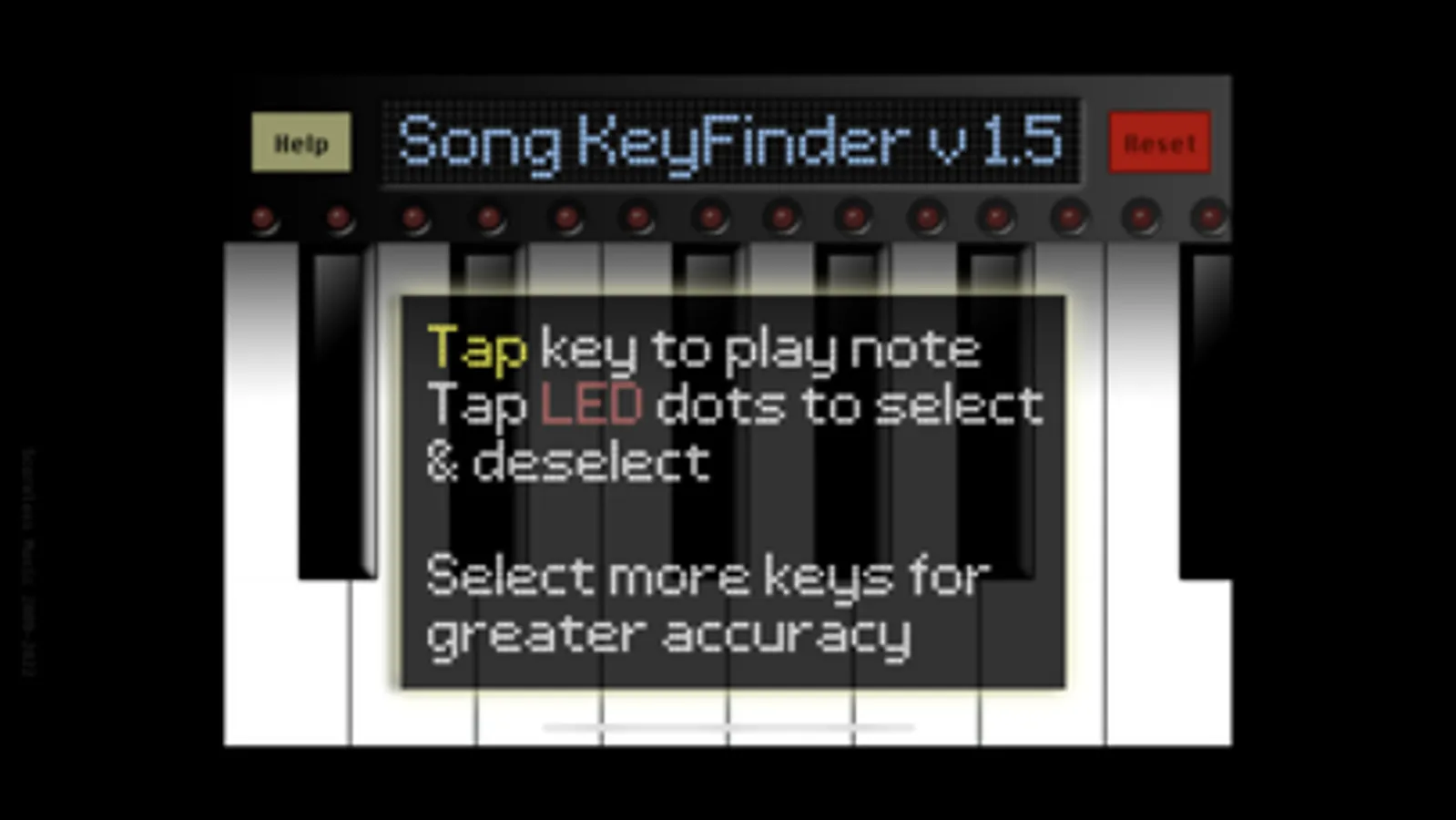Ever wondered what the key of a song being played is? Wonder no more! Just use the built-in piano keyboard to play along with a song's melody. As you confirm notes that coincide with what's being played, KeyFinder will narrow down the number of possible keys the song is in.