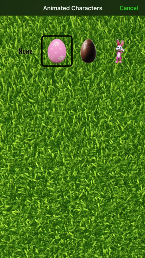 • Animated characters include a colorful egg, a chocolate egg, and a bunny