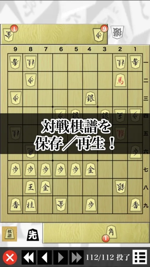 ・対局の途中でアプリを終了した場合でも中断局面から再開できます。