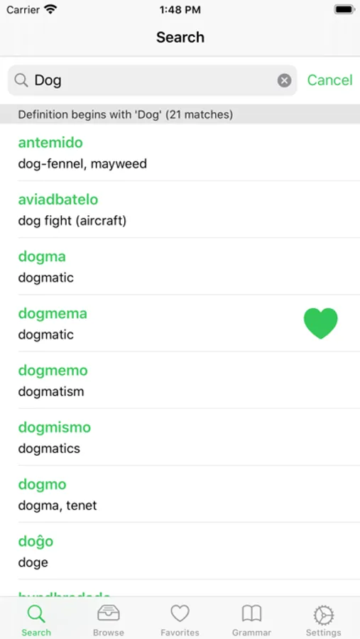 Esperanto is an easy to use English to Esperanto dictionary, which is focused on finding the applicable matching Esperanto word. Combined with the ability to save words for later reviewing, quick browsing of Esperanto words, and looking up matching articles on Esperanto Wikipedia, this makes Esperanto a valuable asset to learning the Esperanto language.
