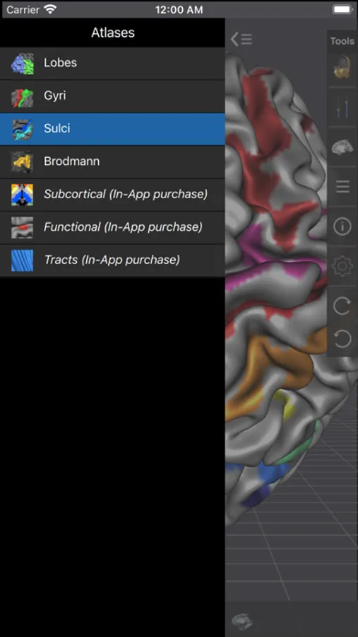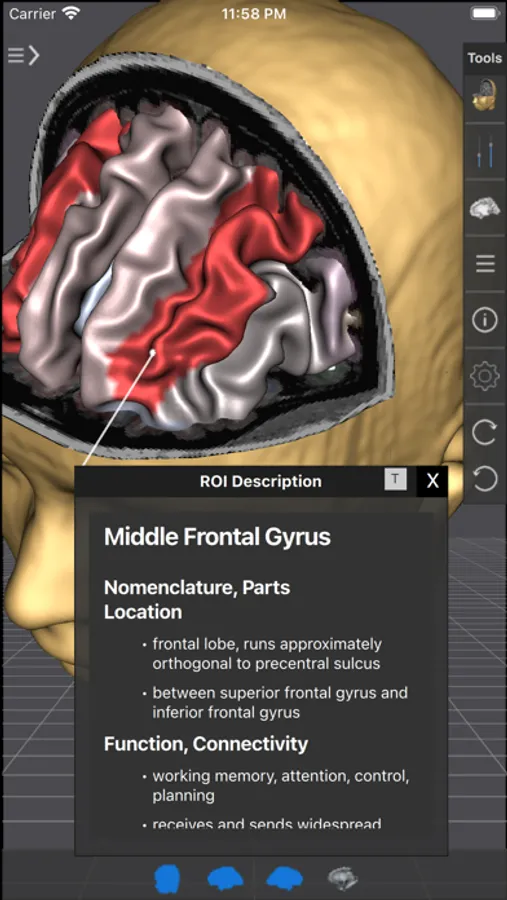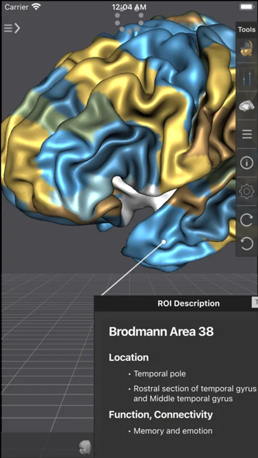 * Tap on a 3D brain model to reveal a brain area at that location.