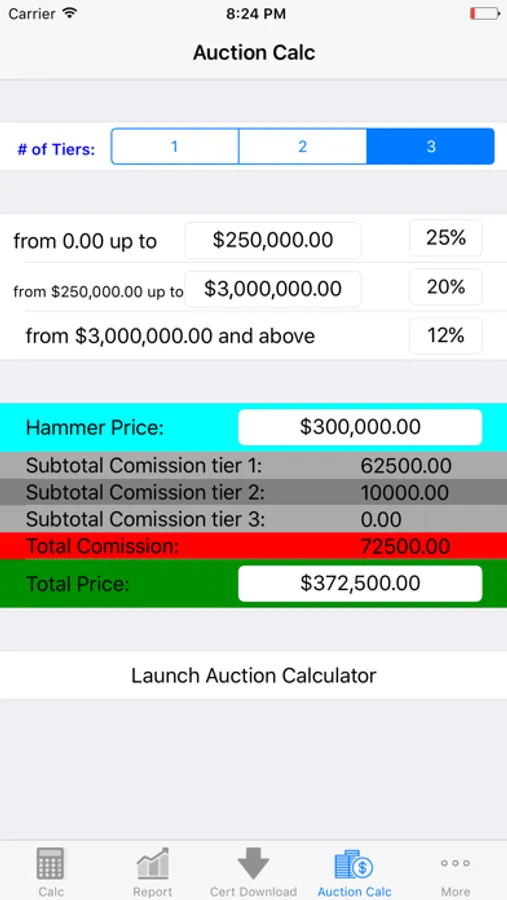 -HOT: Auction Calculator. Supports 1,2, or 3 tiers.