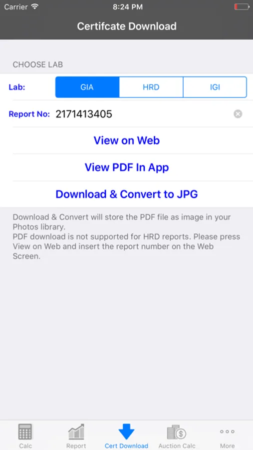 -HOT: GIA/HRD/IGI Once Click CERT DOWNLOAD. It Converts PDF and saves it to photos folder as image.