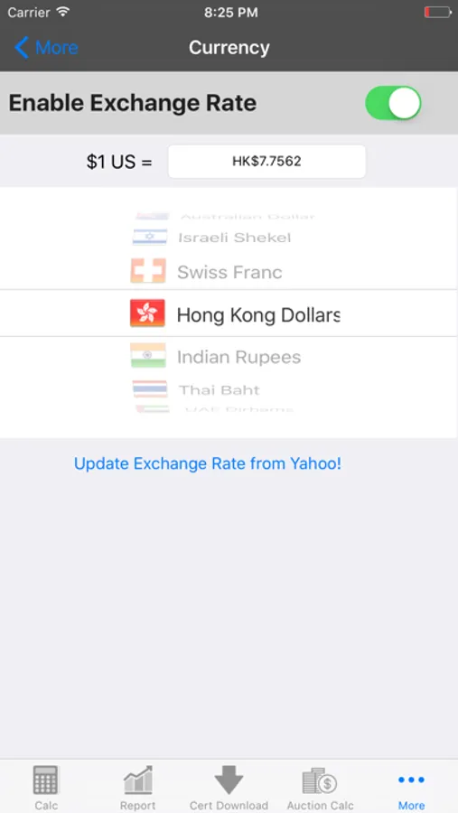 - Use both the 5ct list and the 10ct list for stones over 10ct from the Calc screen, without the need to change tabs. When you enter carat weight over 10 carat in the Carat Weight Textfield, the wheel will jump to the 5ct List. If you still want to see the price with 10ct list, just press on the 10ct section on the wheel. Note: you can disable this feature in the "Settings Bundle".