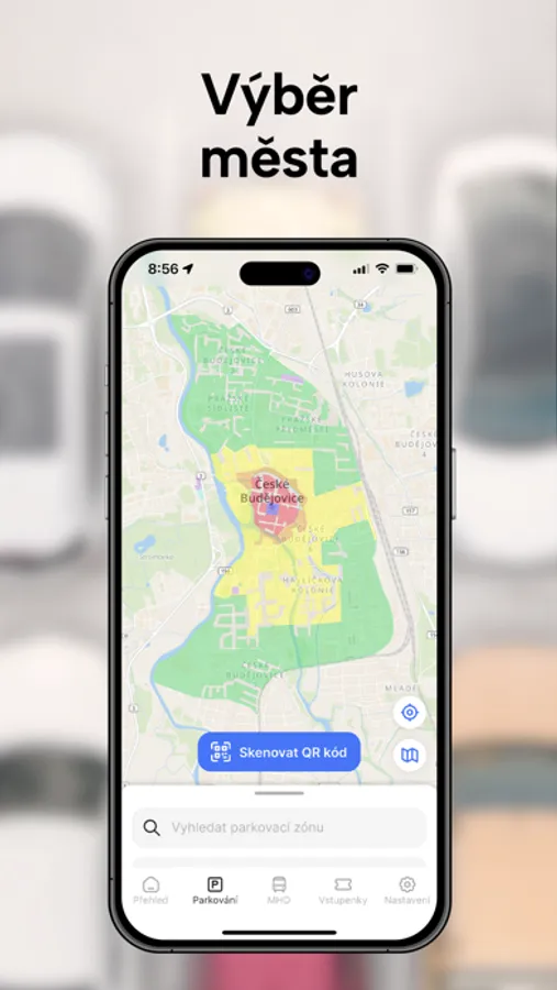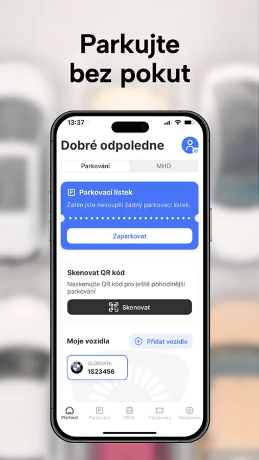 parkovacích lístků ve městech, parkovacích domech, nemocnicích a parkovištích po České republice a vstupenek.