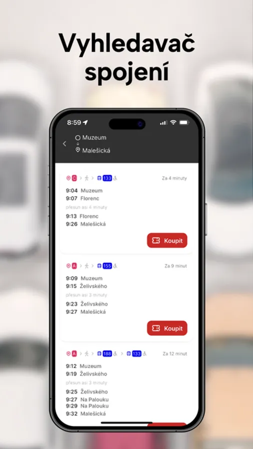 - vyhledání aktuálního dopravního spojení dle zastávky MHD, adresy nebo přímo na základě vaší aktuální polohy;