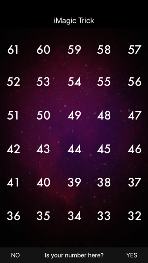 - He notes which of the six screens shown have the selected number and tells the magician which screens the number appears on. He will only answer, "yes" or "no."