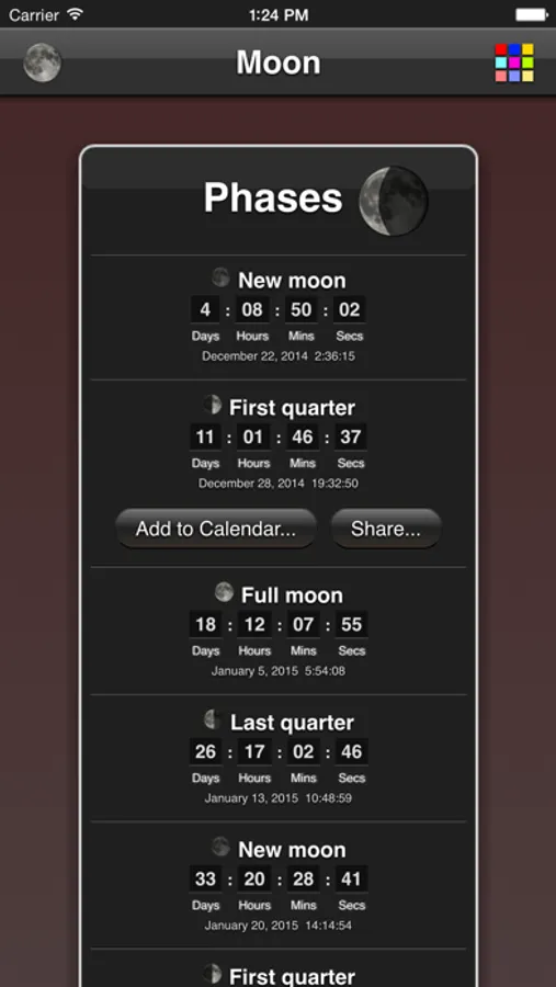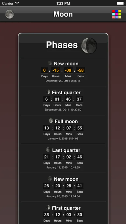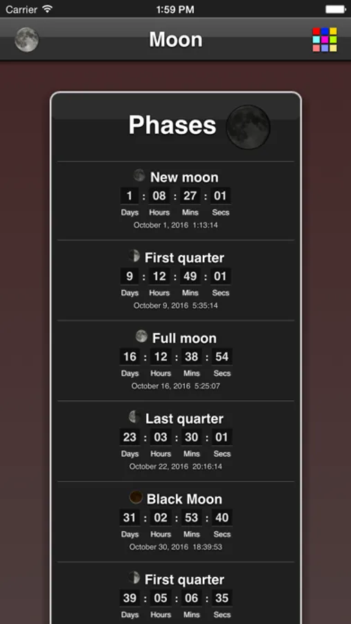 - countdown to next moon phases