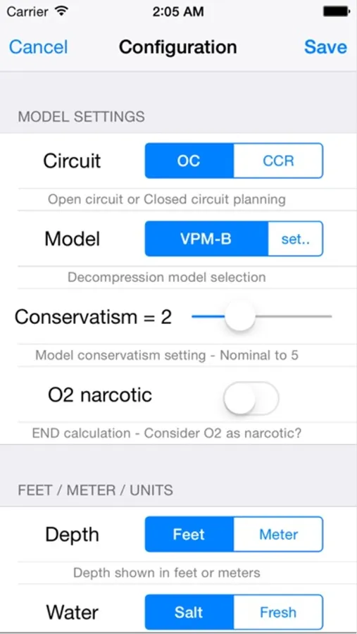 A dive decompression calculator for technical scuba divers.