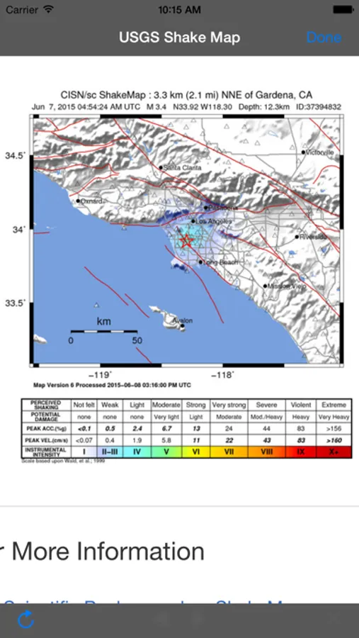 Whenever a ••USGS Shake Map•• is available for an event, a special icon appears in that event's detail view. Tap the icon to see the Shake Map within iFeltThat. In fact, all related web pages (including direct access to North American and Pacific/Indian Ocean ••Tsunami Warnings••) appear inside the app. Also from inside the app, send an email with info, links, and a screenshot of an event detail screen/map to anyone you like.