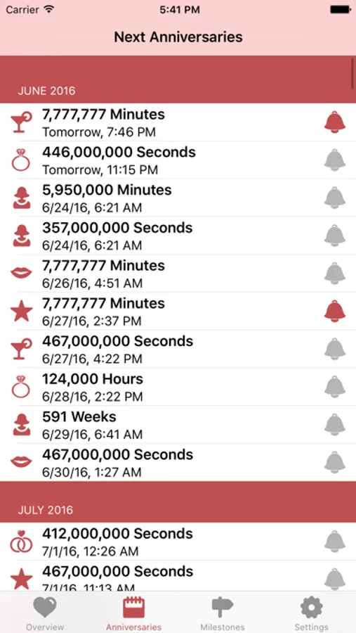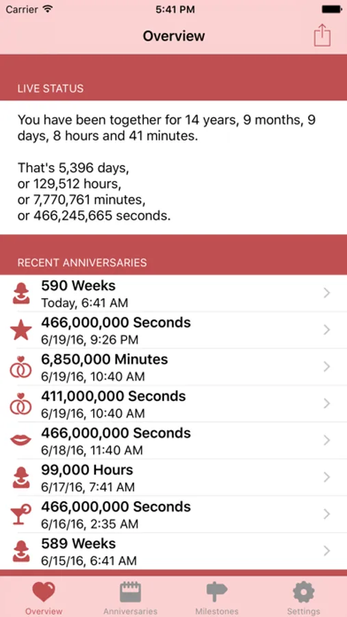 Share recent anniversaries with your friends, get push notifications for anniversaries you want to celebrate and add your own milestones.