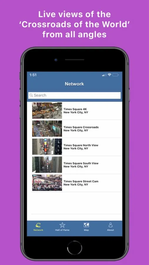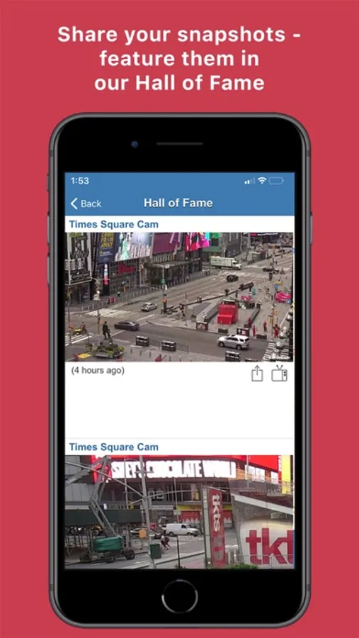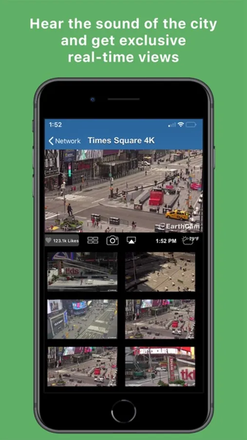 EarthCam presents exclusive webcams at the heart of Times Square in New York City on your iPhone, iPad or iPod Touch. Enjoy multiple live streaming webcam views, looking up, down and across 7th Avenue and Broadway. Experience the general hustle and bustle at the 'Crossroads of the World' on your mobile device! These webcams even have audio, so you can hear the sounds of the city too!