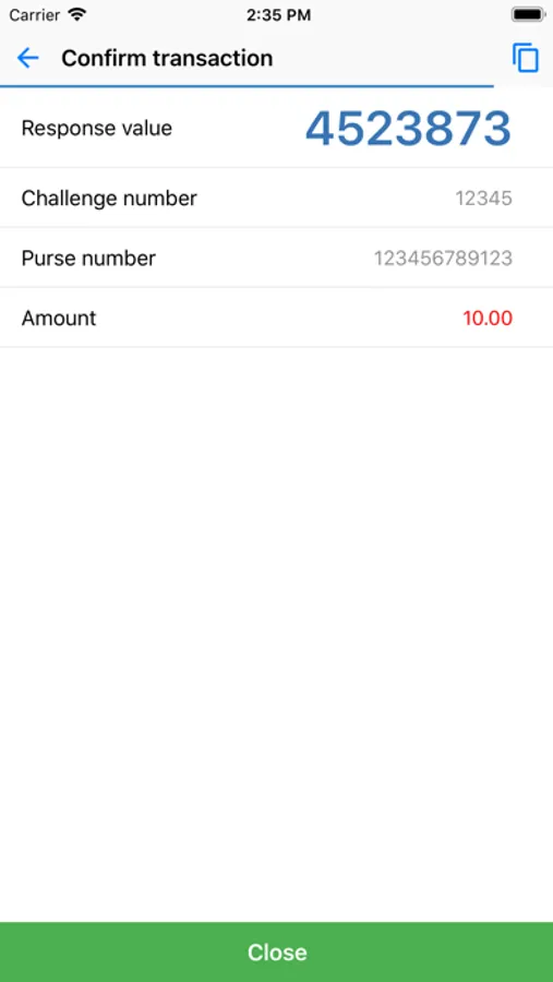 Users launches the E-num application on the mobile phone and enters the Challenge Value. After that a number-answer will be shown on the phone display.