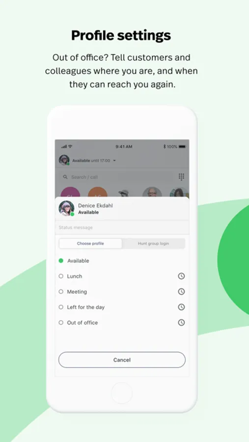 Presence - You are able to view the availability of your colleagues in real time all to reduce communication delays. You will easily see if a person is in a meeting, on vacation or busy handling another call. To make finding colleagues easier, they can be grouped by department.