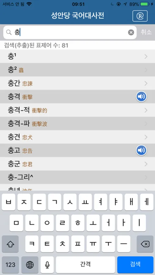 도서출판 성안당의 한플러스 국어대사전 개정증보판의 모든 표제어를 탑재하였습니다.