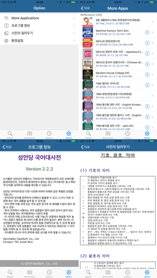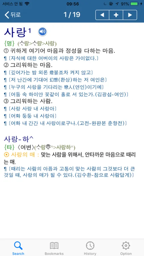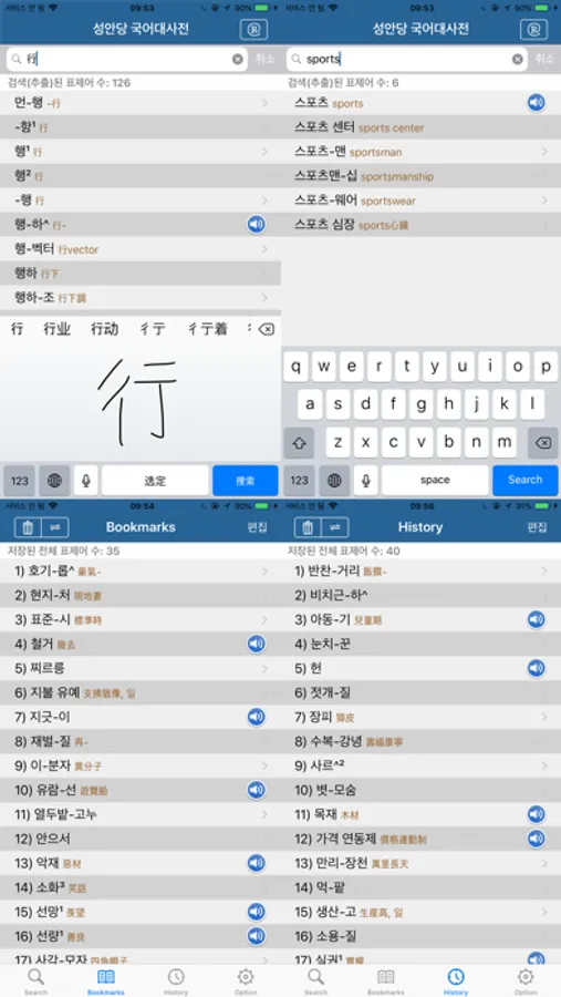4. 책갈피/History 기능을 제공, 저장된 전체 표제어 수 표시