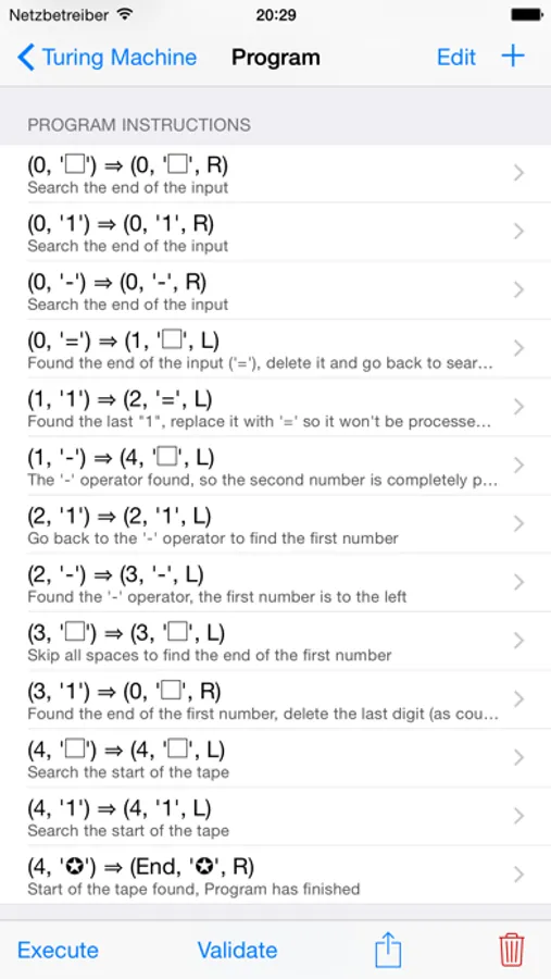 Usually dealing with Turing machines requires paper and pencil for simulating the program execution. This app can help by providing several ways to execute Turing programs and analyze it in an easy and comfortable way.