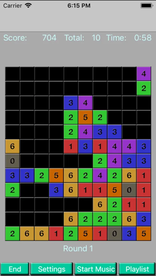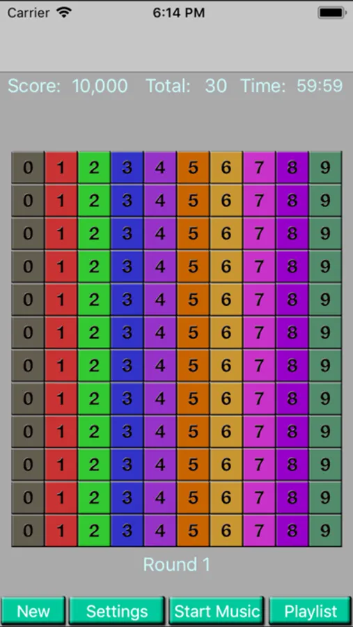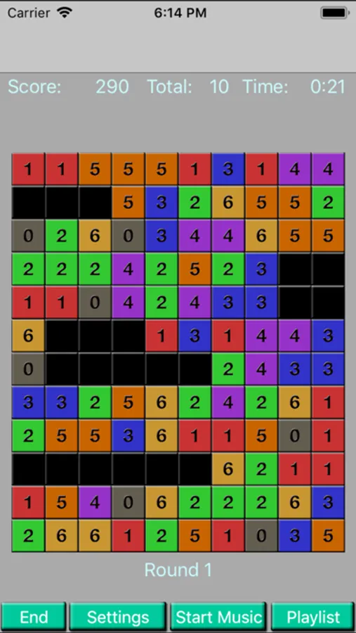 Add Em Up is simple. Just touch and drag across one to many cells, then release. If the amount is less than the total, those cells are removed from the board. If it is equal, they are removed and you get a bonus. The cells must be contiguous. Clear the board fast and you get a bonus. Play three rounds to try and get the high score. Now, music can be started, stopped and changed from within the application.