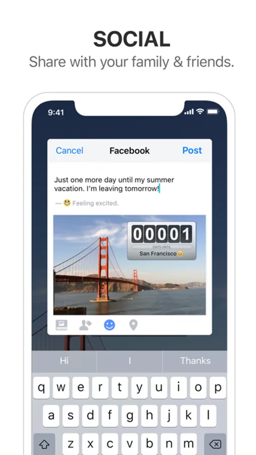 - Share your big day on Facebook, Instagram, Twitter or other social apps.
