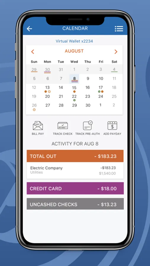 Know your activity – Use the Calendar to see upcoming paydays and payments, and view a history of your transactions. You can pay bills, schedule bill reminders, track external payments, view potential Danger Days and more.