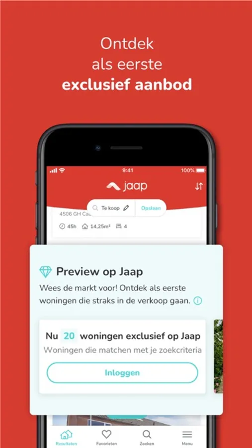 Ontdek exclusief woningaanbod, ontvang real-time meldingen en sla je favoriete huizen en zoekopdrachten op! Maak via de Jaap app zoeken naar woningen sneller én makkelijker.
