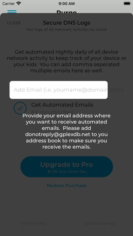 Get email notification incase the app is turned off for any reason. Get nightly logs for all DNS requests as well if you want.