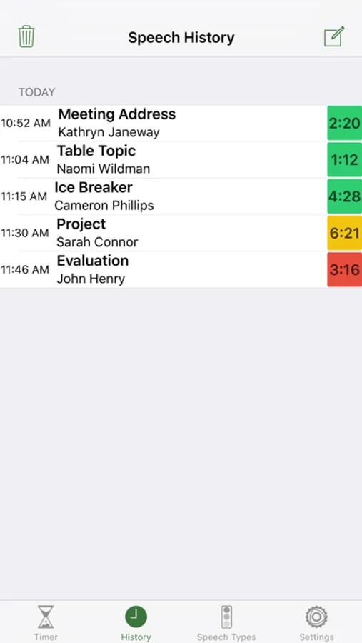 Speech Timer helps you to keep your orators in check and effortlessly deliver the Timer's reports. Say goodbye to staring at the stopwatch during club meetings and hello to enjoying your colleagues' speeches.