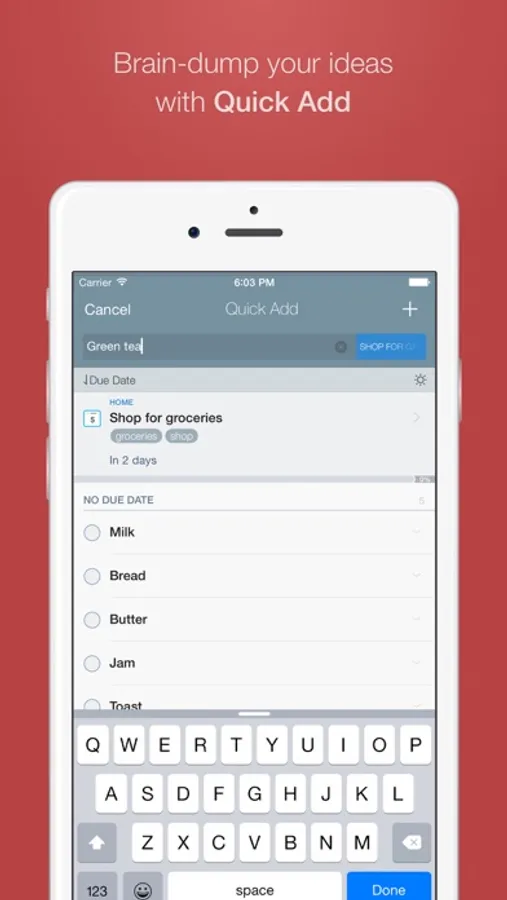 • Save your thoughts as they come to you, by using Quick Add (Tap-hold on [+])
