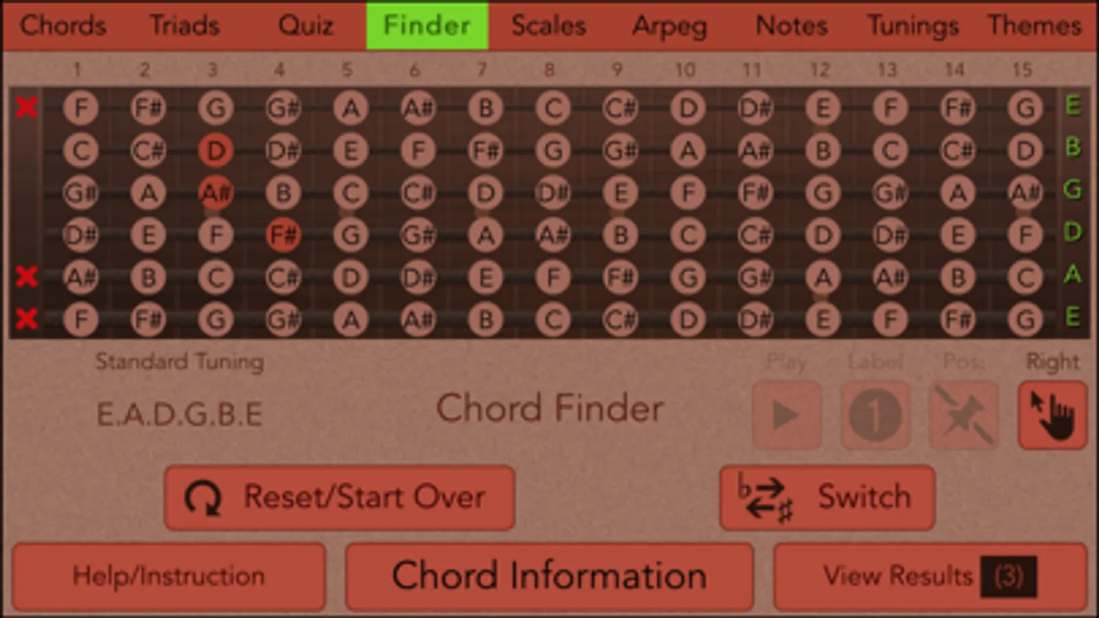 + Reverse Chord Finder Tool: Don't know a way to find out the names of chords you've come up with? This tool will help. Just enter your notes on the fretboard that make up a chord, and app will tell you what chord name is!