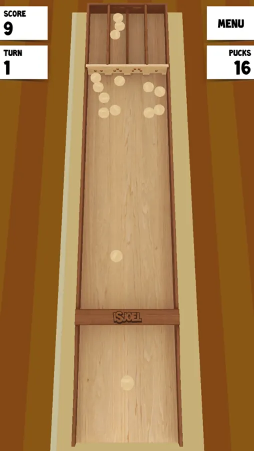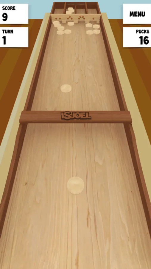 iSjoel (pronounced izjool) is based on the popular traditional Dutch party game Sjoelen. The goal of Sjoelen is to slide 30 wooden pucks on a shuffle board into numbered scoring boxes. The boxes are numbered, from left to right : 2, 3, 4 and 1.