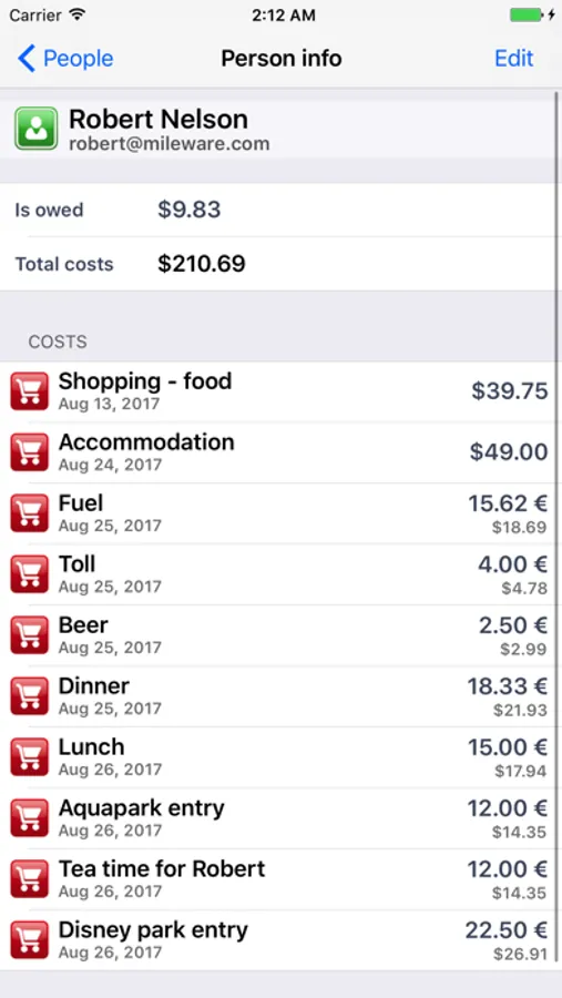 With the powerful application “Share-a-bill” you can define individual events and group of people involved in each event. Enter each expense on the fly and define who paid for the expense and who has participated on that expense. If you are abroad you can define several currencies and their exchange rates. At the end of the event everybody knows exactly who owes what to whom. Finally you can email a detailed report from the event to your friends.
