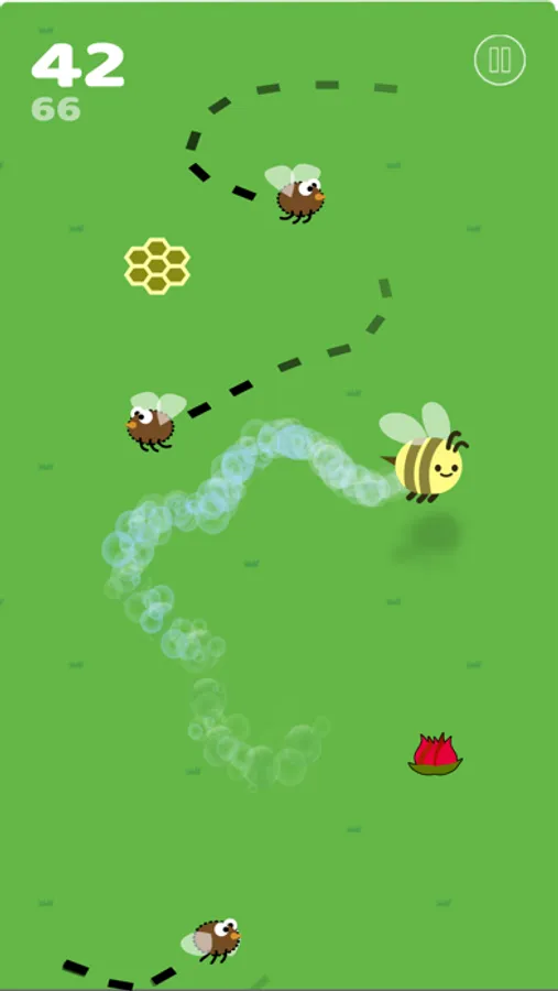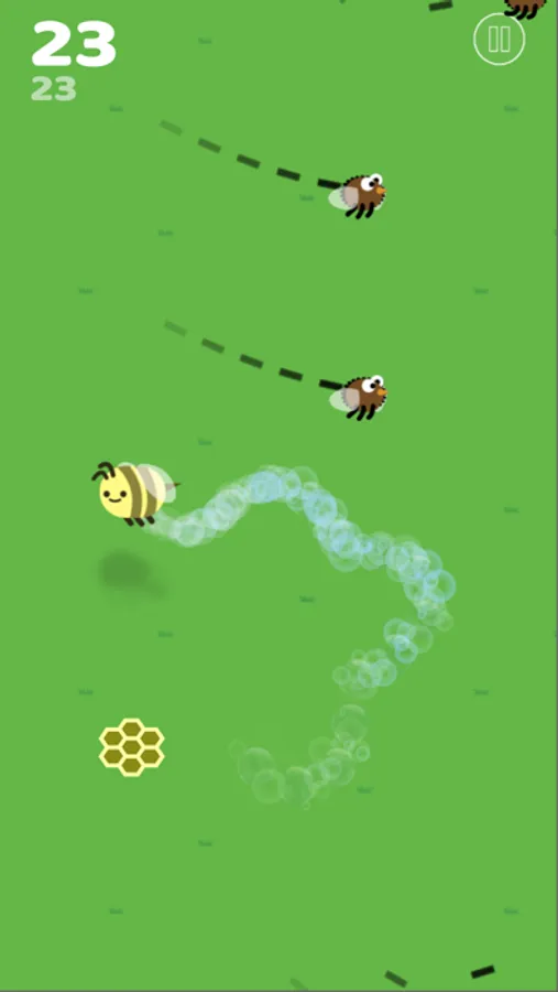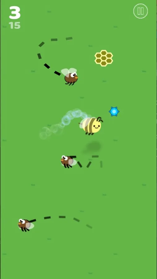 Tap and hold the screen to make your bee fly in the opposite direction. Collect power ups that help you collect more points and help give you an advantage over the flies.
