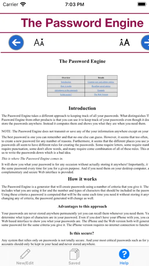 NOTE: The Password Engine does not transmit or save any of the your information anywhere except on your iPhone.
