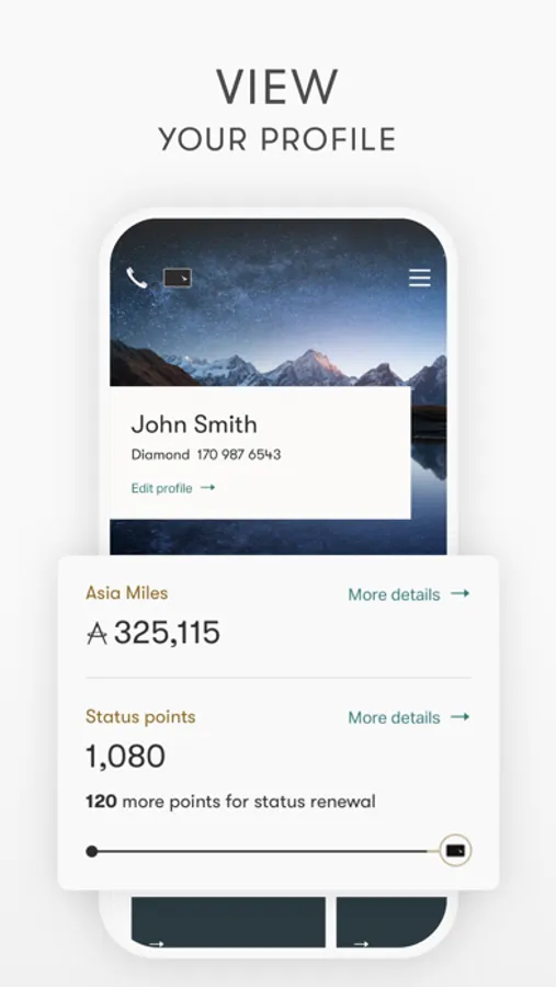 The all-new profile page allows you to check your Status Points and Asia Miles all in one place and have your membership card on hand anywhere, at any time.