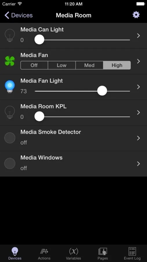 - Real time updates of all hardware (brightness, temperature, active zone, sensor values, etc.)