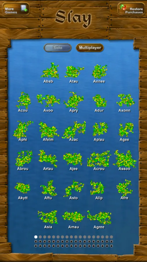Slay is a simple to learn game of strategy and cunning set in medieval times. The island is divided up between the six players, and you must try to capture your enemies' land and link up your own territories to create larger and stronger ones. You begin capturing land by attacking with your peasants. Once your territories become richer you can combine peasants to make stronger and stronger people (Spearmen, Knights and then Barons) who can kill weaker enemy troops, or knock down their castles. Just be careful that you don't create too many expensive men or the territory will go bankrupt!