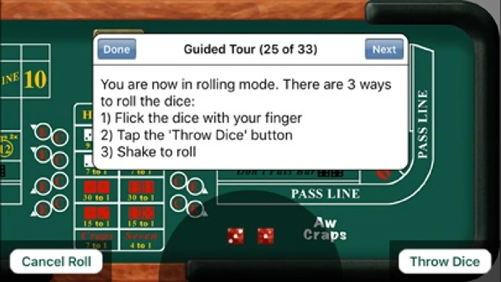 • Interactive guided tour gets you playing Aw Craps! quickly